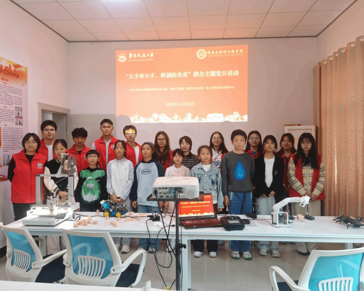 为深化党建带团建、队建机制,搭建大中小学互动交流平台,激发青少年科学兴趣,11月16日下午,华东交通大学创新创业学生党支部联合软件工程第二研究生党支部,在信息与软件工程学院双创中心北区基地成功举办“大手牵小手,科创向未来”联合主题党日活动,南昌市雷式小学、育新小学的学生代表共同参与。