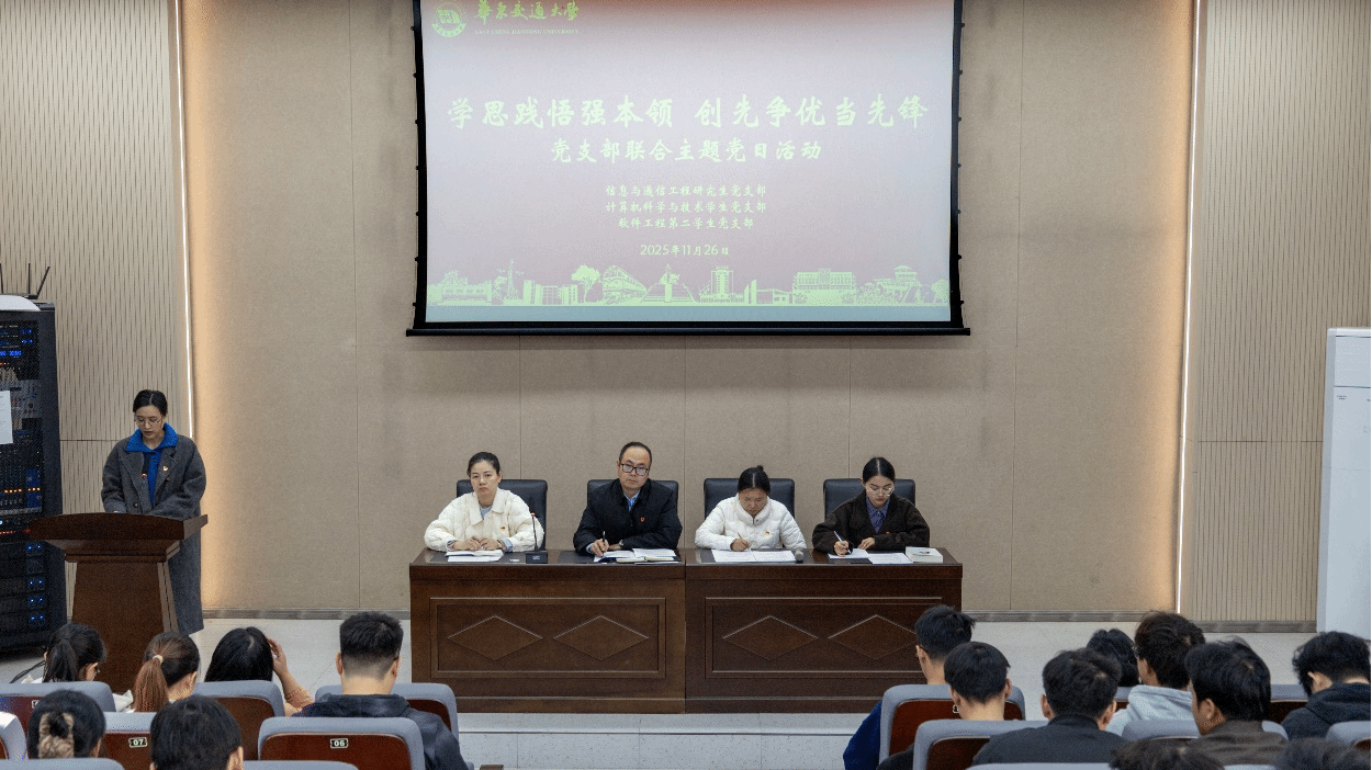 由信息与通信工程研究生党支部、计算机科学与技术学生党支部、软件工程第二学生党支部联合举办的“学思践悟强本领,创先争优当先锋”主题党日活动于26日在学院校友报告厅举办,冯荣刚出席并讲话。