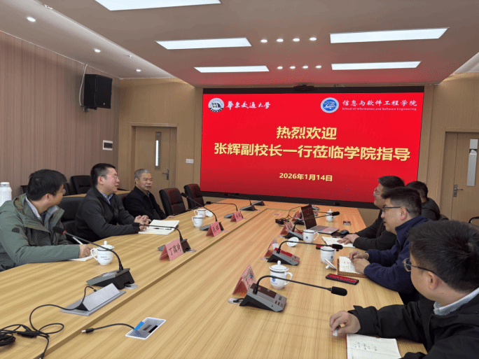 在听取汇报后,张辉副校长对信息与软件工程学院近年来在学科建设、科研创新和服务地方等方面取得的成效给予充分肯定。他指出,学院发展定位清晰、特色鲜明,在学校整体学科布局中具有重要地位。下一步要进一步对标国家战略需求和学校“双一流”建设目标,聚焦关键指标,加强有组织科研,在高层次人才引育、重大平台培育和标志性成果产出上持续发力。